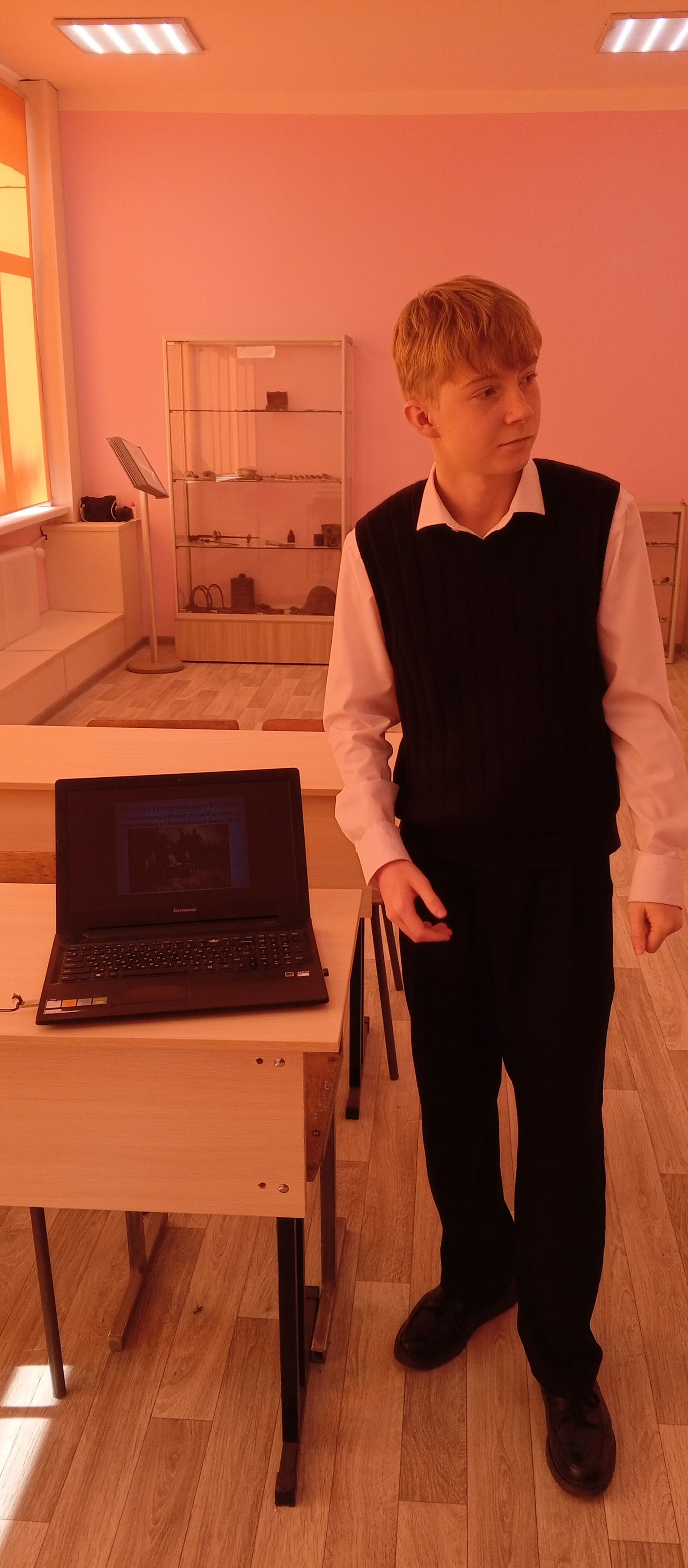 10 сентября, участники школьного музея выступили с докладами об истории Дня воинской славы России. А также ознакомили учащихся, с биографией М.И.Кутузова