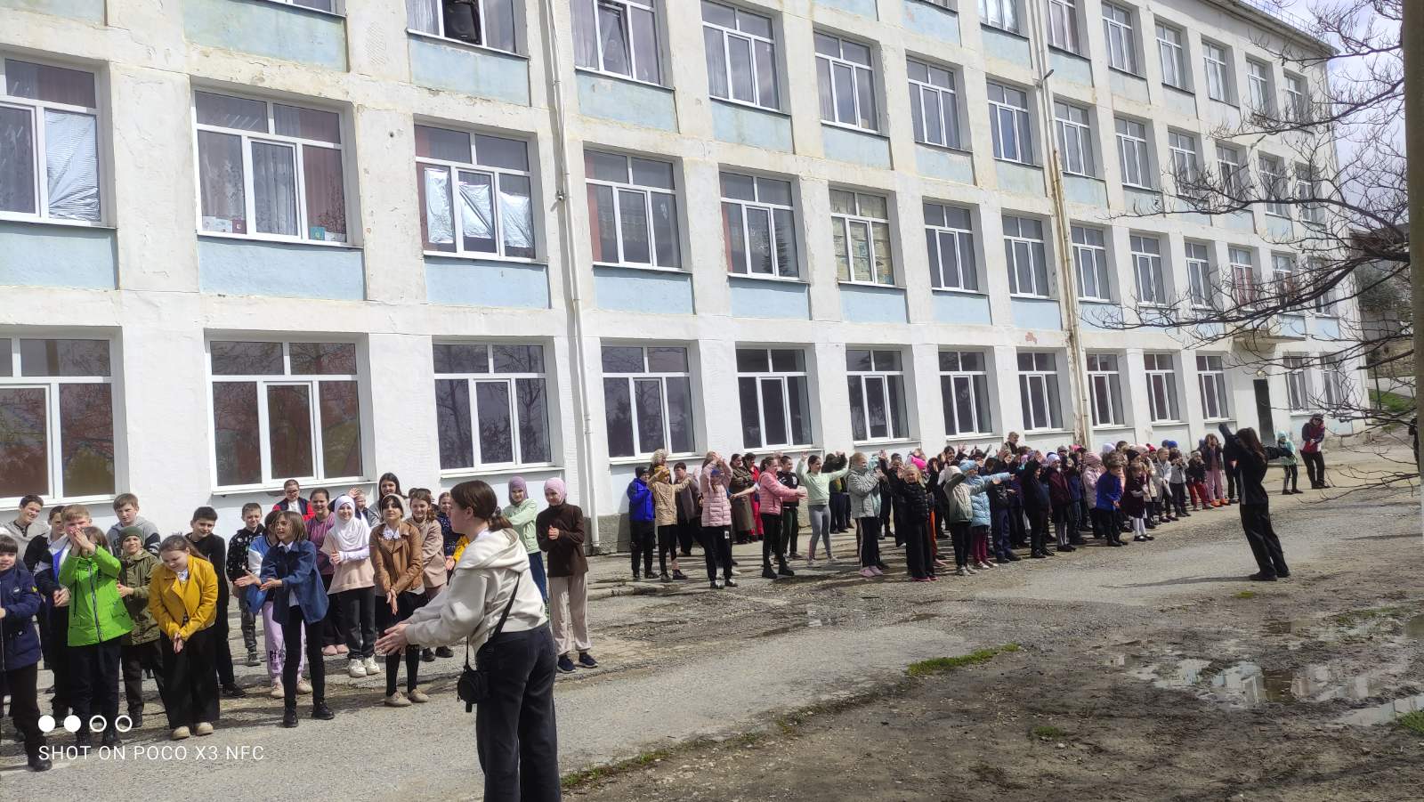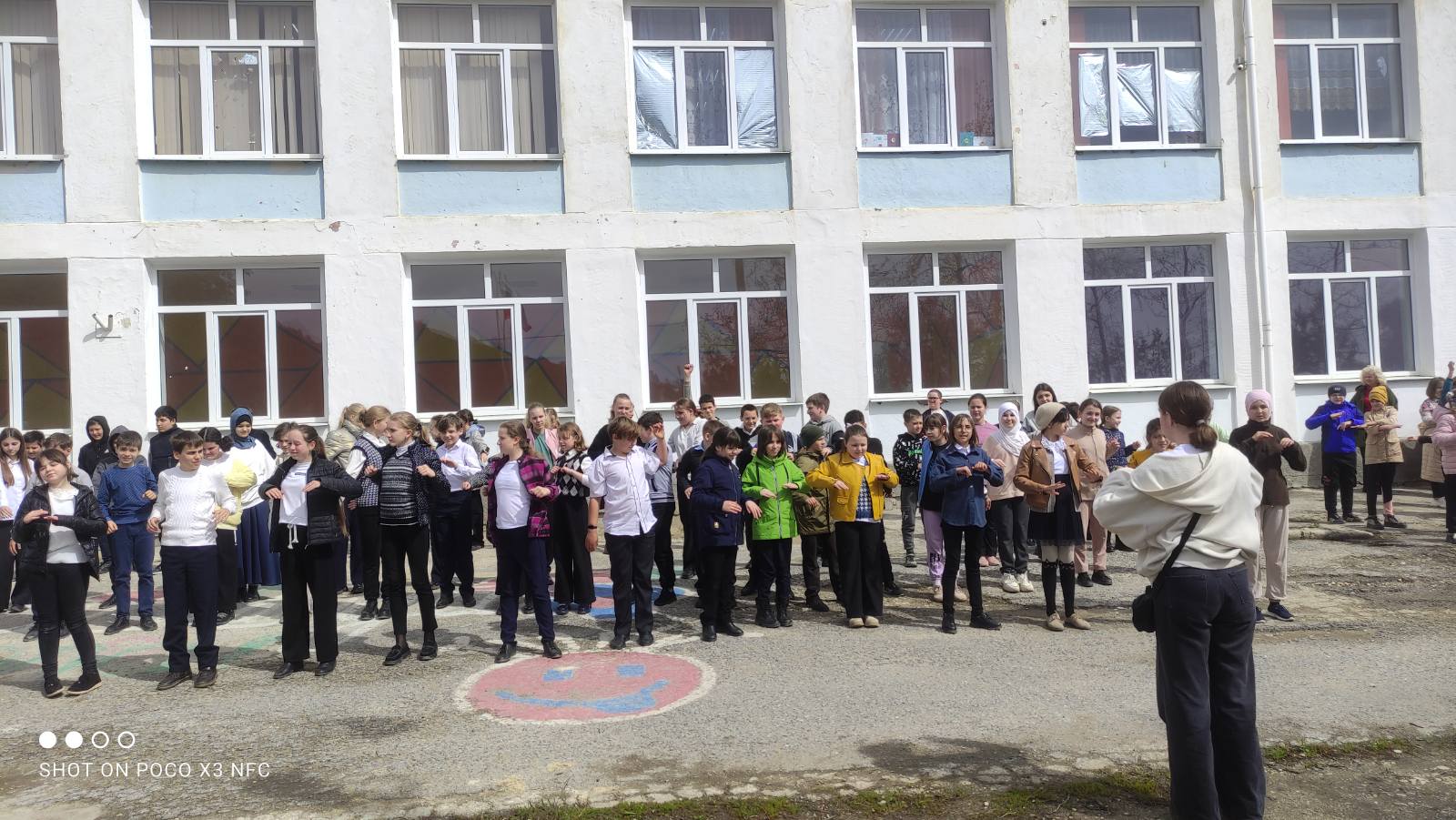 В нашей школе прошла очередная еженедельная зарядка. С приходом весны обучающиеся школы делают зарядку на свежем воздухе.